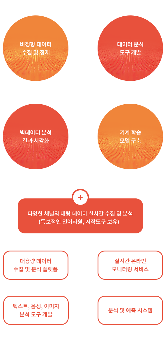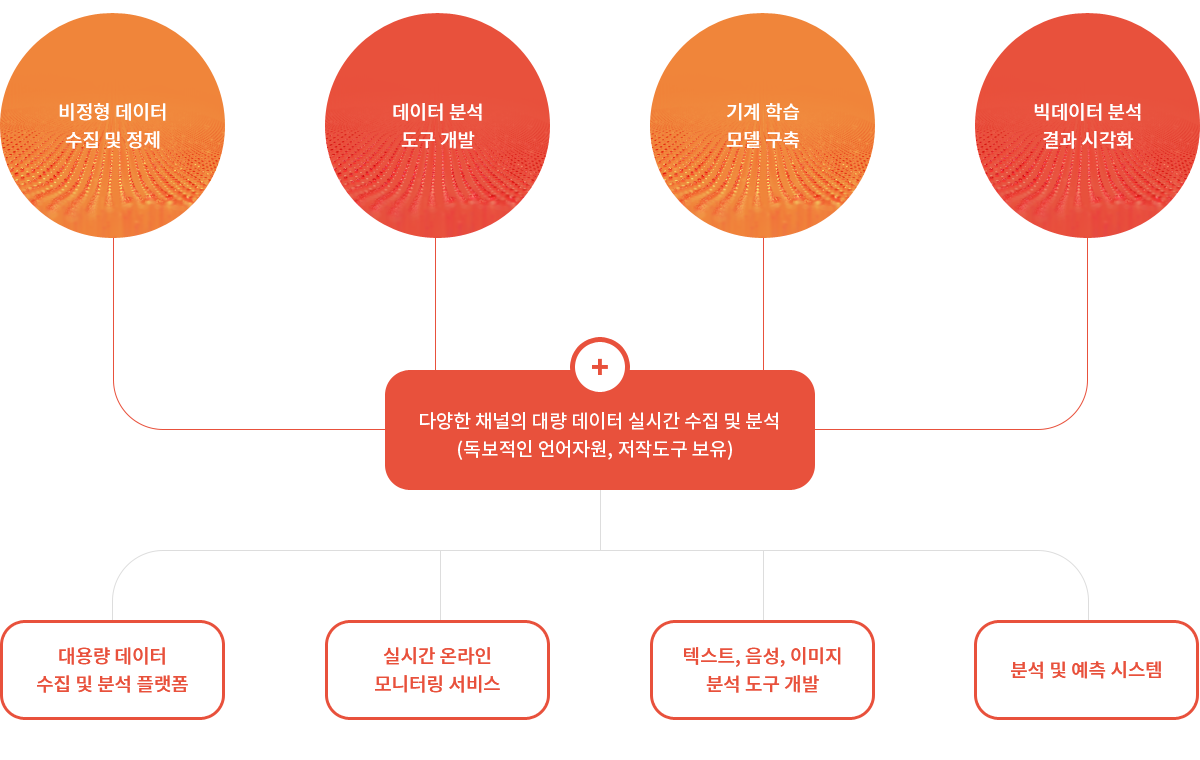 최신 어휘 트렌드를 반영한 자연어 처리 기술과 감성 분석 등 분석 사전,검색어 커스터마이징으로 최적의 빅데이터 분석 결과 도출